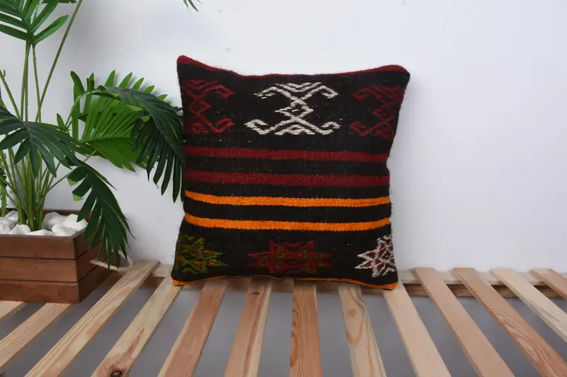 Almohada de tiro bordada marrón y roja, almohada vintage geométrica