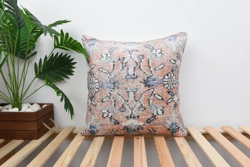 Almohada de tiro bordada hecha a mano, almohada de sofá cuadrado vintage