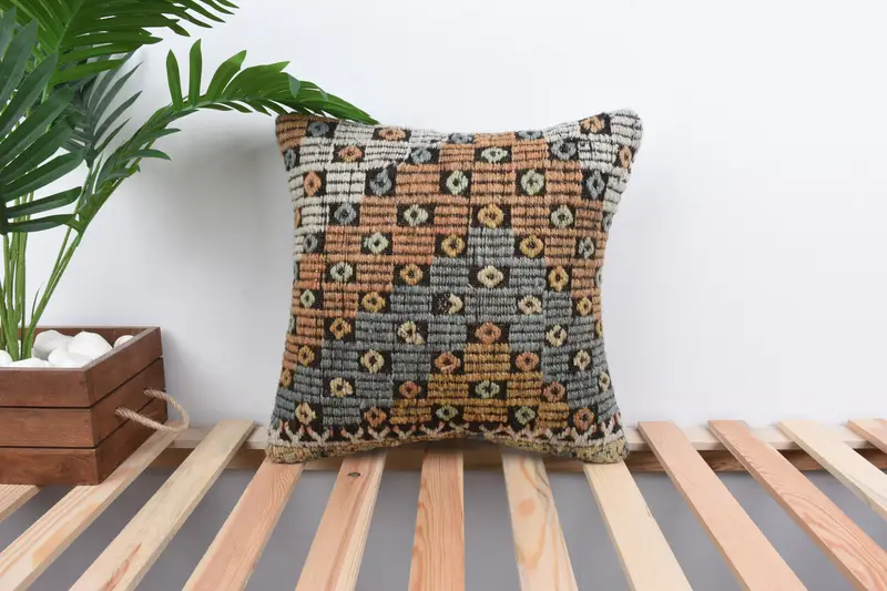 Almohada de tiro bordada naranja y púrpura, cojín geométrico vintage