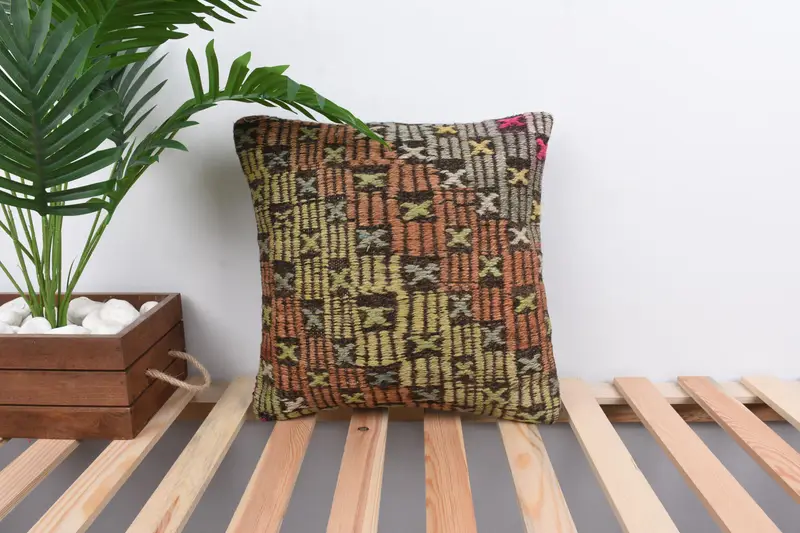 Almohada de tiro bordada naranja y verde, cojín geométrico vintage