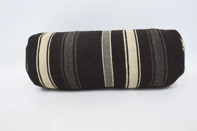 Almohada decorativa de lana hecha a mano, funda de almohada vintage marrón y gris