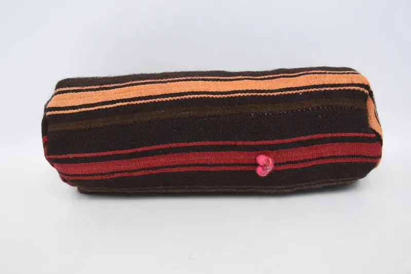 Almohada Kilim de lana marrón y roja, almohada decorativa vintage hecha a mano
