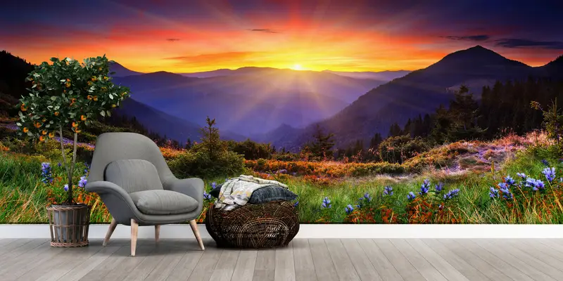 Papel pintado impreso: Amanecer sobre un majestuoso paisaje montañoso