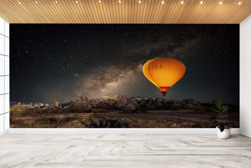 Papel pintado impreso: majestuosos globos de Capadocia bajo la Vía Láctea