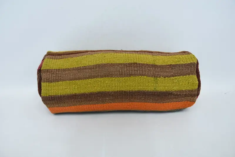 Almohada decorativa de lana hecha a mano con cremallera, cojín vintage verde y naranja