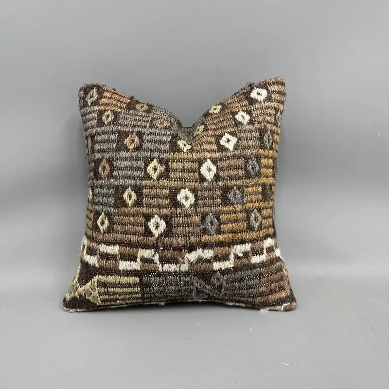 Almohada de lanzamiento Kilim tejida a mano, cojín geométrico vintage