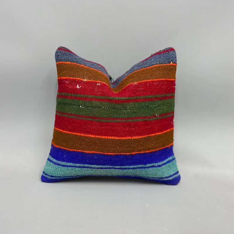 Almohada de tiro Kilim tejida a mano, cojín de rayas verdes y bronce