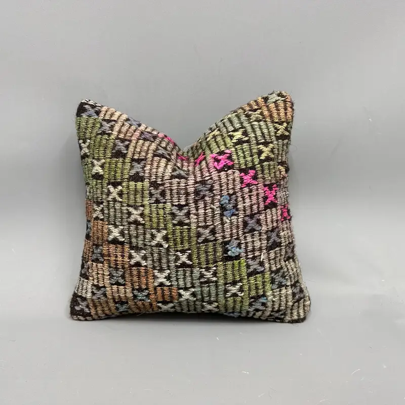 Almohada de lanzamiento Kilim tejida a mano, cojín bordado vintage