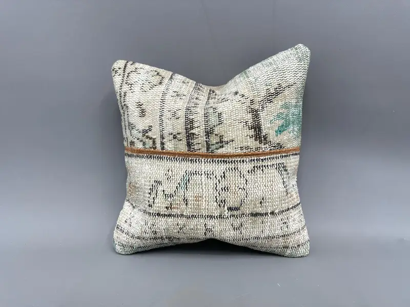 Almohada de lanzamiento de patchwork verde y marrón, cojín de lino hecho a mano de 16x16