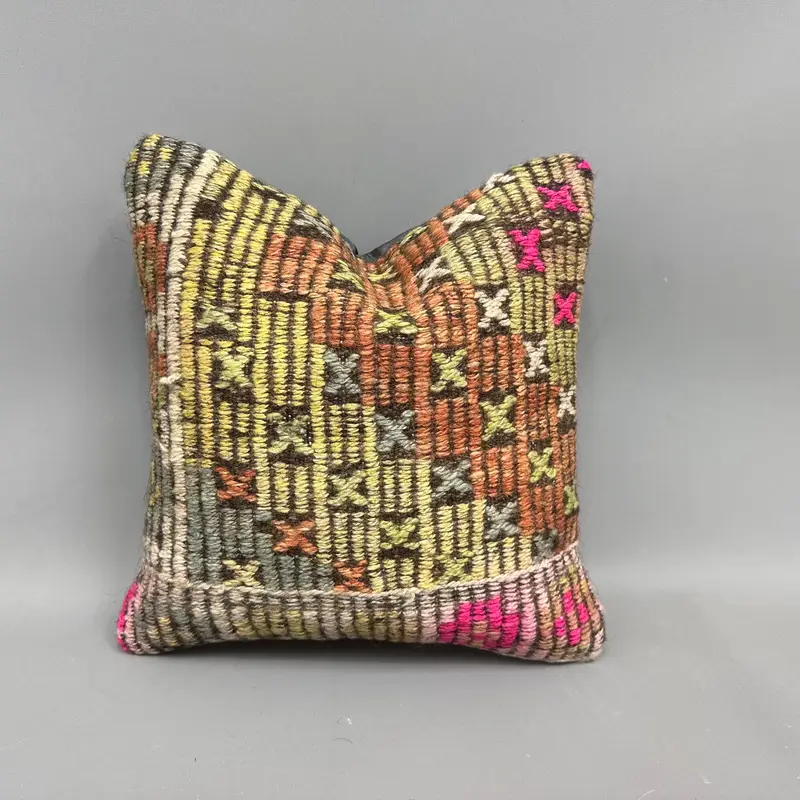 Almohada de lanzamiento Kilim tejida a mano, cojín bordado vintage