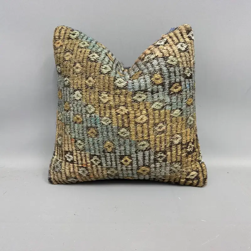 Almohada de lanzamiento geométrico naranja y gris, cojín Kilim vintage