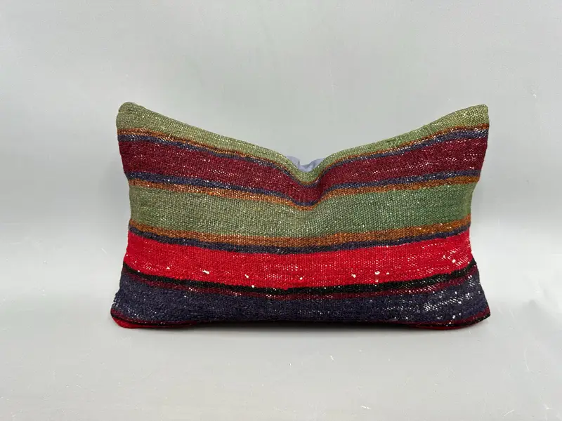 Almohada de tiro de rayas rojas y verdes, cojín bordado vintage