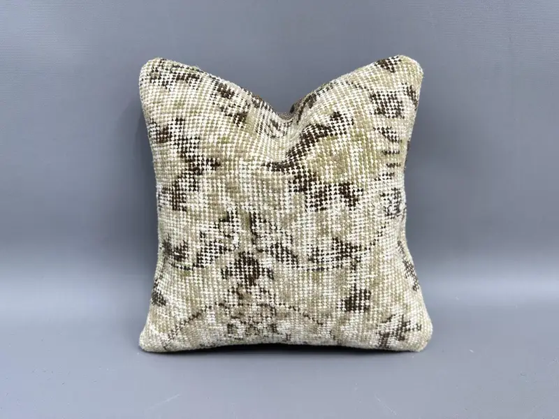 Almohada de tiro del suroeste beige y marrón, cojín Kilim vintage