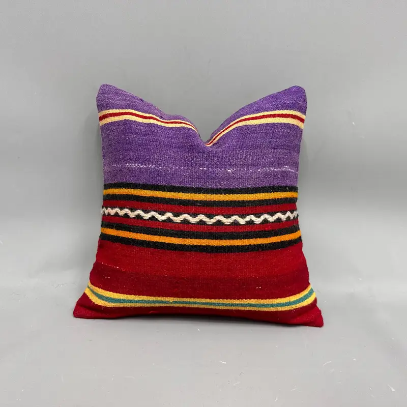 Almohada de tiro de rayas moradas y rojas, cojín Kilim vintage de 16x16