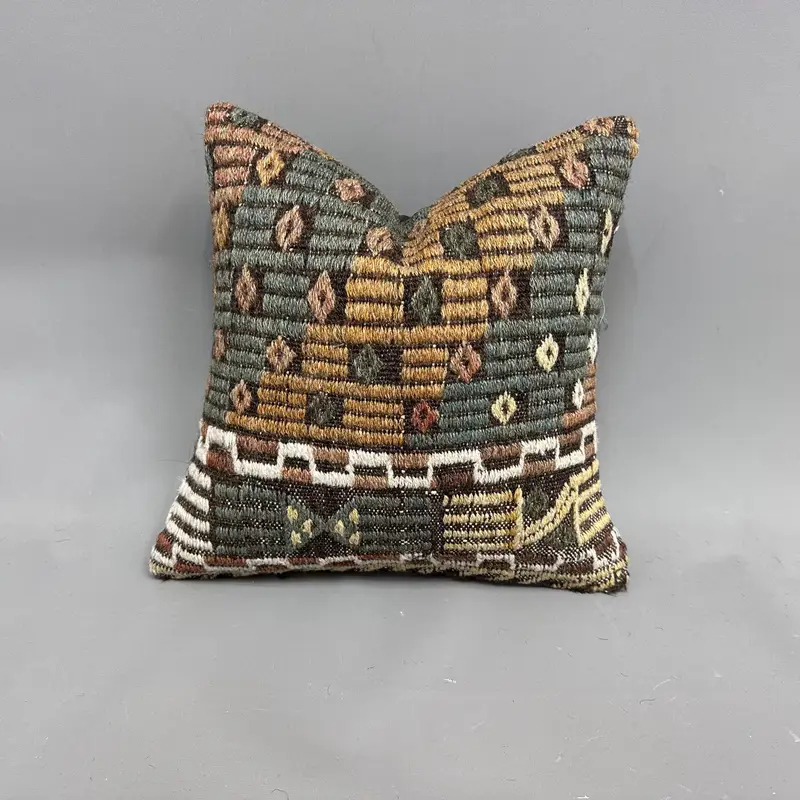 Almohada de lanzamiento Kilim tejida a mano, cojín turco vintage de 16x16