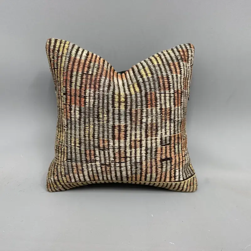 Almohada de tiro bordada roja y gris, cojín vintage hecho a mano
