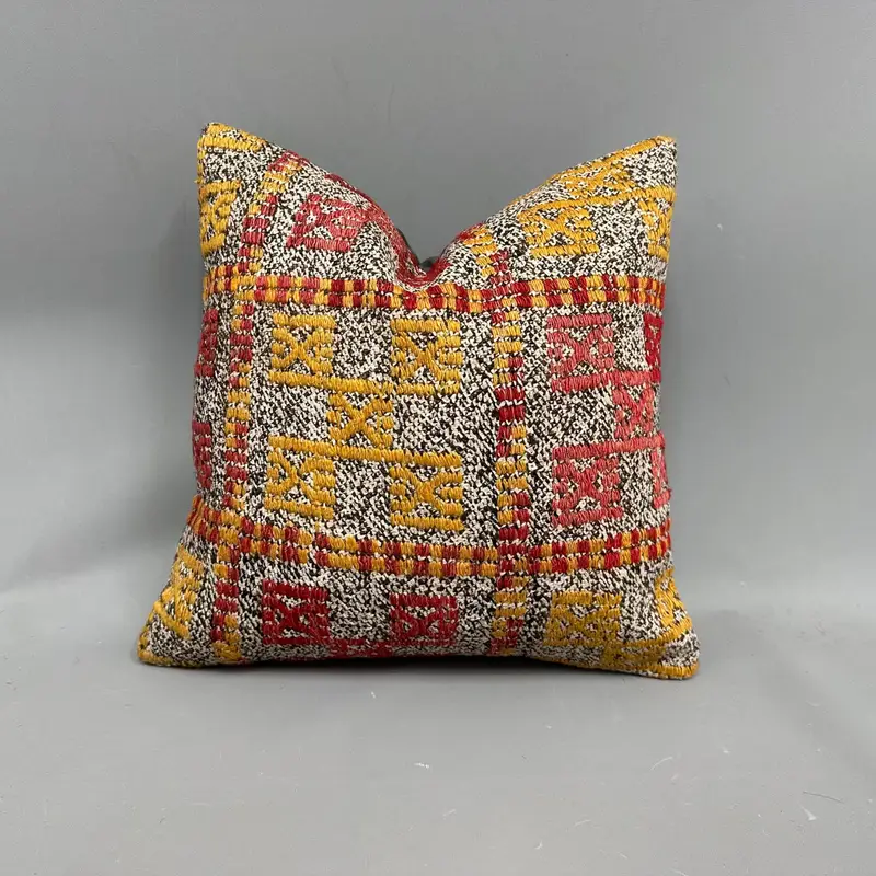 Almohada de lanzamiento geométrico naranja y rojo, cojín de lino vintage