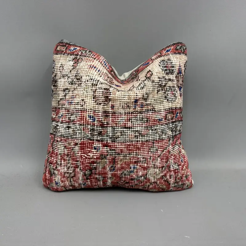 Almohada de tiro Kilim del suroeste tejida a mano, cojín vintage rojo y beige