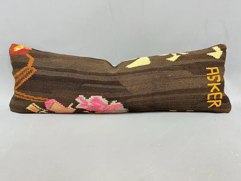 Almohada de lanzamiento Kilim turco tejida a mano, cojín vintage 12x36