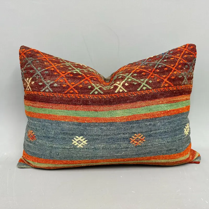 Almohada de tiro Kilim turco tejida a mano, cojín vintage de 20x28 pulgadas