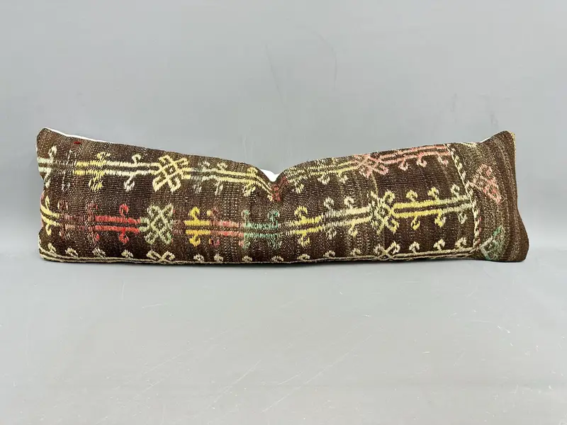 Almohada de tiro Kilim del suroeste marrón, almohada rectangular vintage hecha a mano
