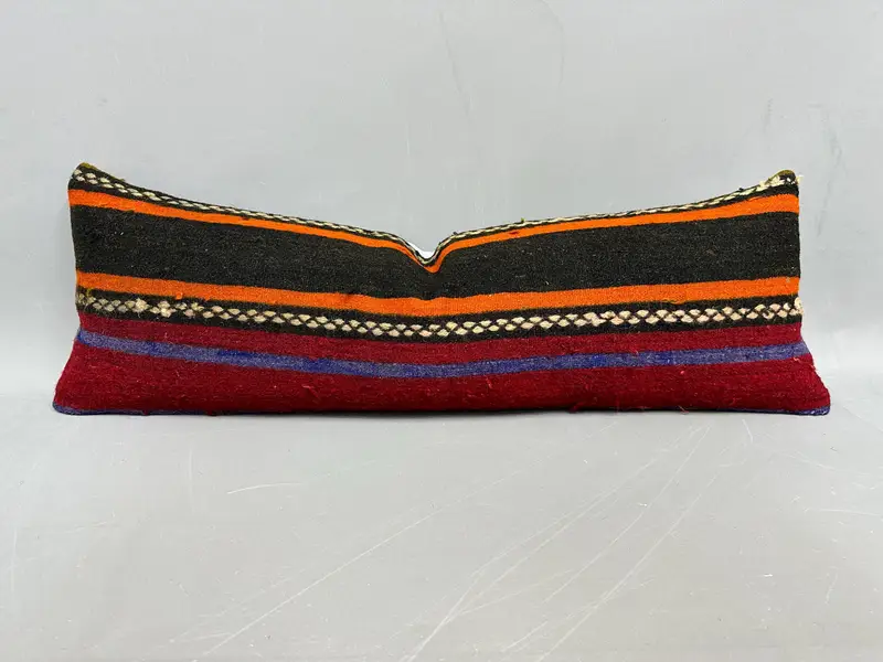 Almohada de tiro bordada roja y naranja, almohada de rayas vintage