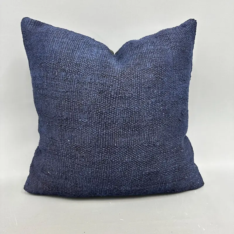 Almohada de lanzamiento azul del suroeste, cojín bordado vintage