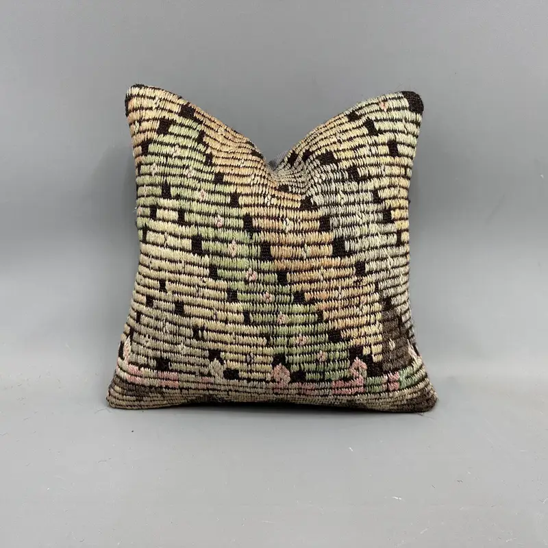 Almohada de tiro Kilim verde y naranja, cojín vintage 16x16