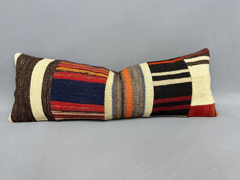 Almohada rectangular Kilim tejida a mano, almohada de lanzamiento vintage 12x36