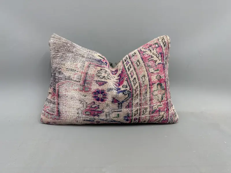 Almohada de tiro patchwork azul y beige, almohada Kilim vintage hecha a mano