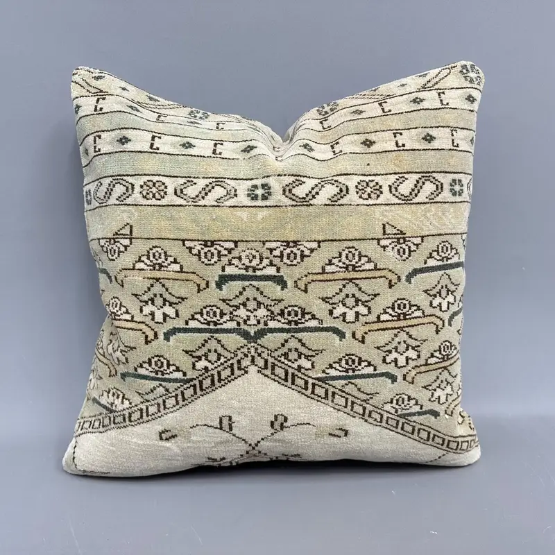 Almohada de lanzamiento bordada en beige y bronce, cojín Kilim vintage