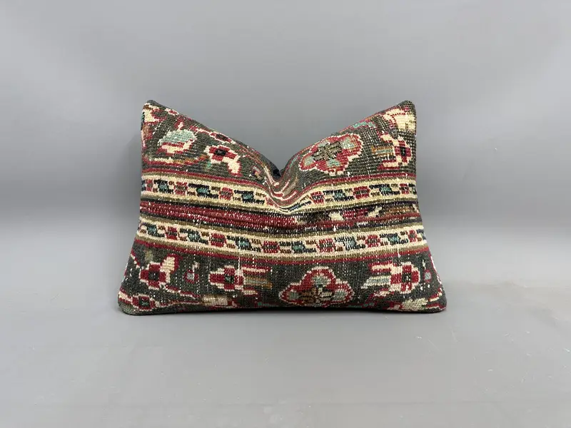 Funda de almohada Kilim gris y beige, almohada de tiro hecha a mano