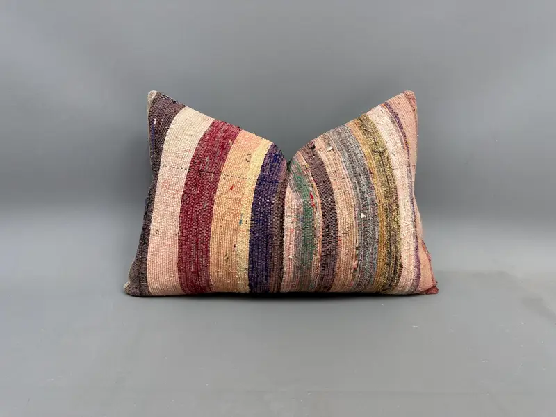 Almohada de lanzamiento Kilim tejida a mano, cojín de rayas vintage