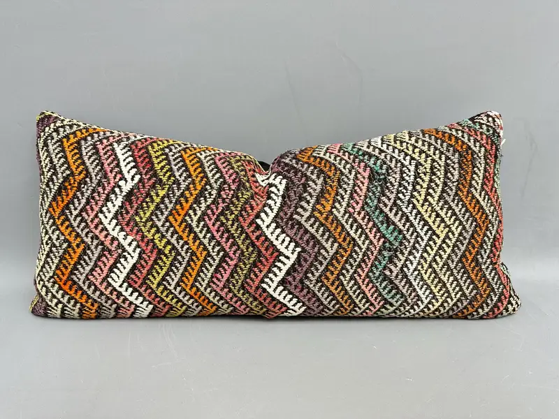 Almohada de lanzamiento Kilim tejida a mano, cojín de rayas vintage
