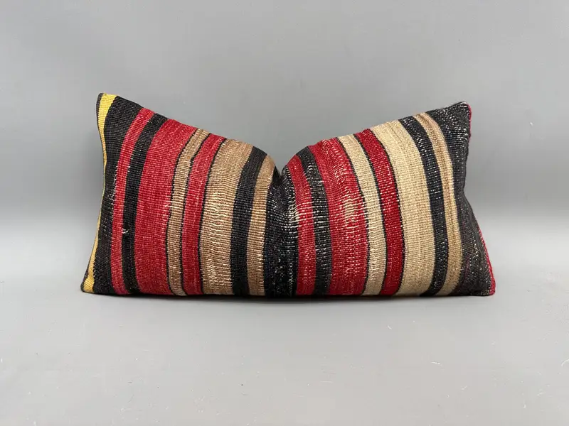 Almohada Kilim turca tejida a mano, almohada de tiro a rayas rojas y marrones
