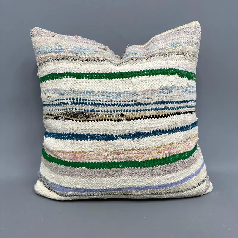 Almohada Kilim a rayas beige y bronce, almohada de tiro vintage étnico