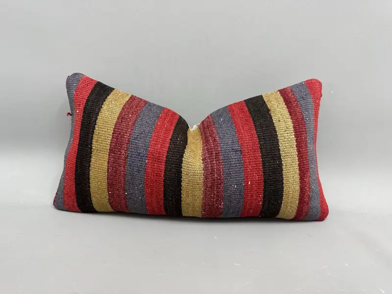 Almohada de tiro de rayas rojas, cojín vintage de 12x24 pulgadas