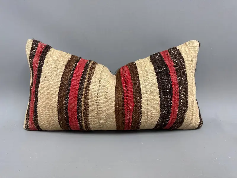 Almohada de rayas rojas y marrones, almohada de tiro bordada 12x24