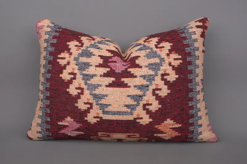Almohada de lanzamiento geométrico rojo y bronce, cojín vintage hecho a mano