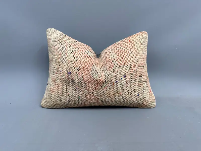 Almohada de lanzamiento Kilim tejida a mano, cojín vintage beige y marrón