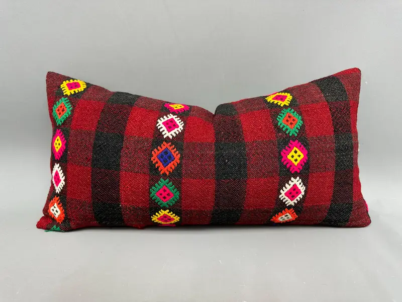 Almohada de tiro geométrico rojo y verde, almohada bordada vintage