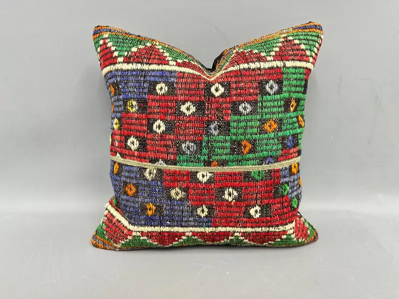 Almohada de lanzamiento Kilim de patchwork rojo, cojín vintage 20x20
