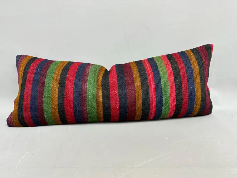 Almohada de tiro bordada roja y verde, almohada de rayas vintage