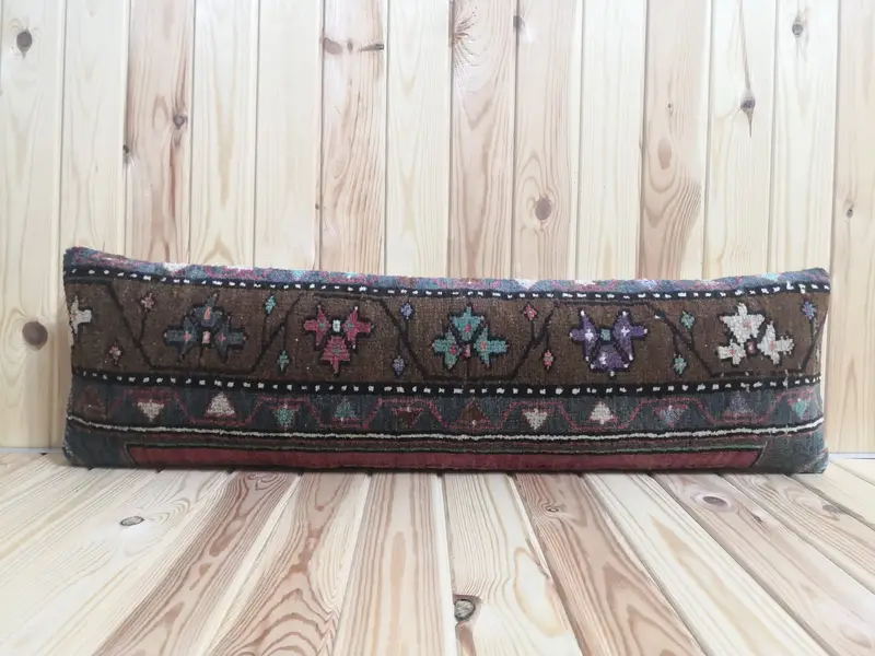 Almohada de lanzamiento de alfombra de Anatolia tejida a mano, almohada de lanzamiento vintage bordada