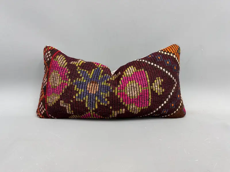 Almohada Kilim del suroeste tejida a mano, almohada de lanzamiento bordada de 12x24