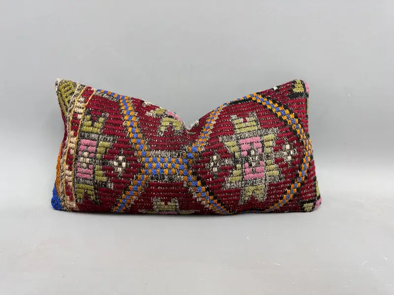 Almohada de lanzamiento bordada del suroeste rojo, almohada vintage 12x24
