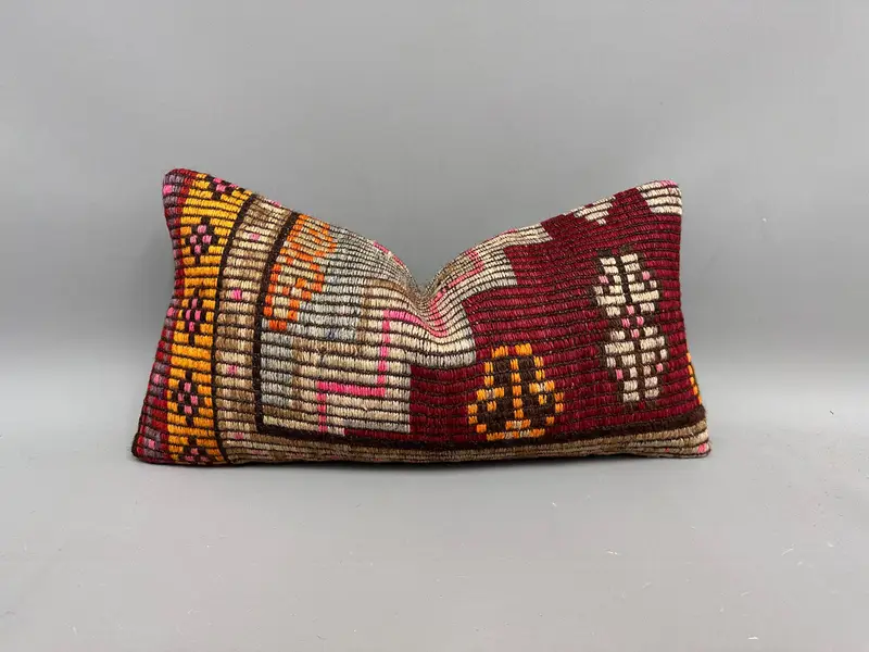 Almohada de tiro Kilim del suroeste tejida a mano, cojín vintage de 12x24 pulgadas