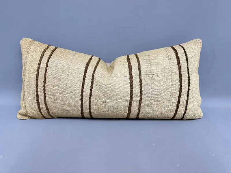 Almohada de tiro Kilim turco tejida a mano, cojín de rayas beige y marrón