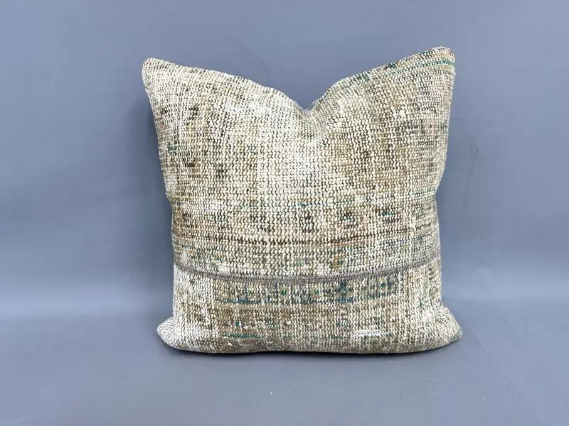 Almohada de lanzamiento de patchwork beige y marrón, cojín Kilim vintage