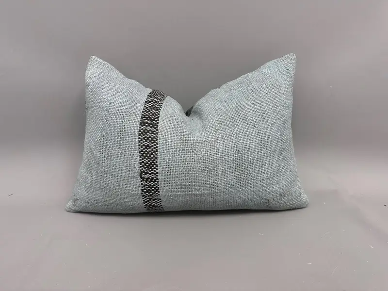 Almohada Kilim a rayas grises y marrones, almohada de tiro vintage hecha a mano